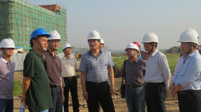 建委副主任夏平(中)在工地现场指示工作