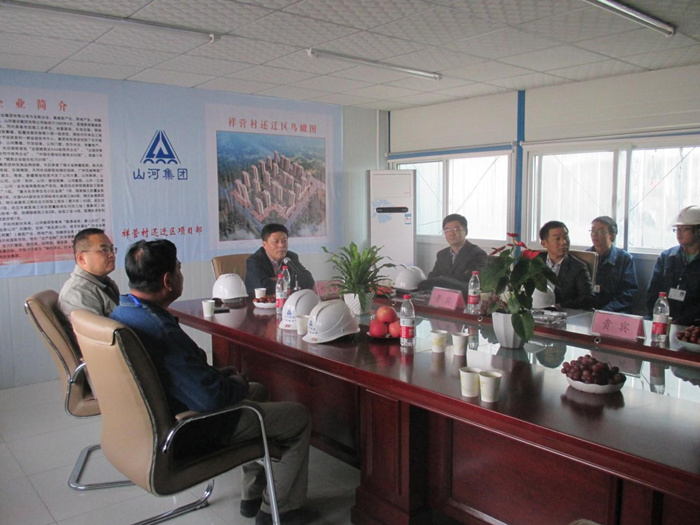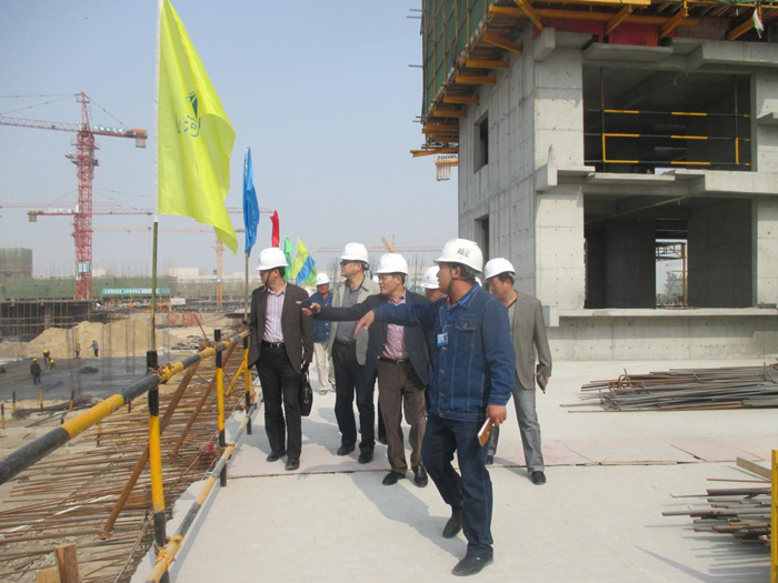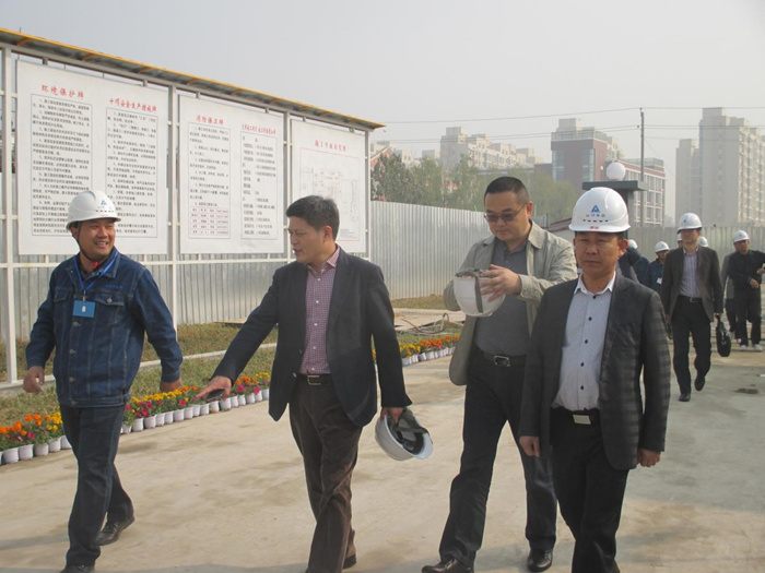 2013年10月28日上午9:30,集团公司董事长程理财一行到aiyouxi(中国)官方网站集团承建的郑州祥营还迁区项目部检查指导工作,项目经理马文敏及全体管理人员热烈欢迎。