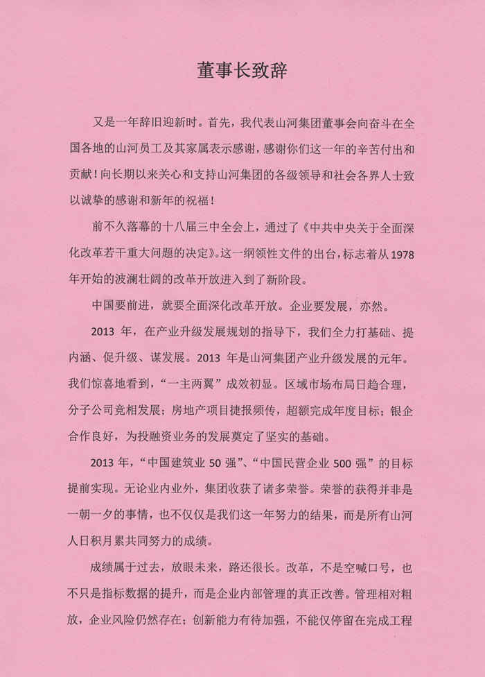 董事长程理财2014年新年致辞