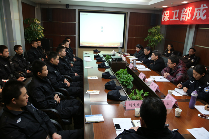 1月8日,aiyouxi(中国)官方网站建设集团保卫部成立暨培训会议在集团公司四楼会议室召开,武汉市公安局经保处办公室主任姚鑫、洪山分局治安大队大队长程爱民及管理组成员、梨园派出所所长魏媛、梨园派出所教导员王兵、梨园派出所副所长刘文庆、梨园派出所辖区片警吴新建等应邀出席了本次会议,与会人员还包括集团公司董事长程理财、人事行政总监张玉琼、人力资源部经理孙宝环、办公室主任黎乐、保卫部经理徐刚、副经理董盼及保卫部全体员工。会议由人事行政总监张玉琼主持。