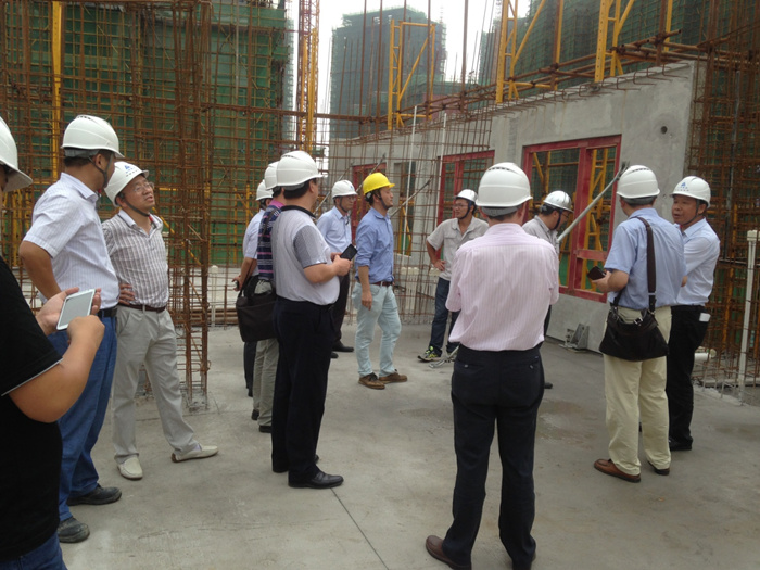 南昌万科项目部和集团项目部的相关人员,分别向专家评审团介绍了南昌万科海上传奇工业化装配式pc楼的工程概况、工艺流程及节点施工控制方案,同时专家及各单位代表分别阐述咨询了各自的观点及疑问。为进一步完善工业化装配式施工工艺,评审团及与会领导还深入施工现场进行指导与探讨。