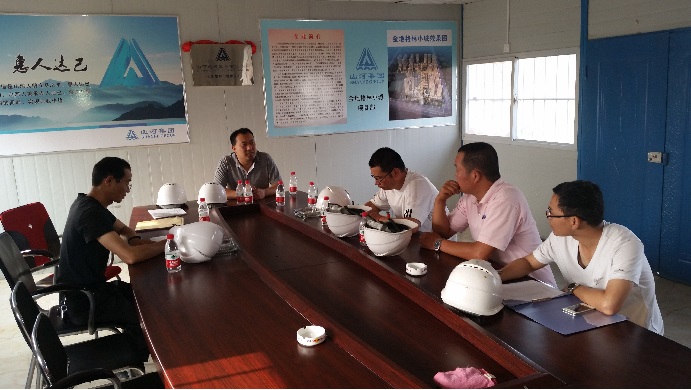 随后,在金地格林小城项目安全生产会上。刘总一行认真听取了项目部管理人员的工作汇报。他指出,项目部要突出“一个目标”,即强化安全红线意识,促进企业安全发展;实施“两个举措”,不仅要宣传发动举措,还要全面检查举措。要求“三个定位”,即对存在的安全隐患要定位整改时间、定位整改内容、定位整改责任。刘总还强调安全工作要做到“四个落实”:落实安全专项方案、落实安全专项资金、落实安全专人管理、落实安全督促检查。