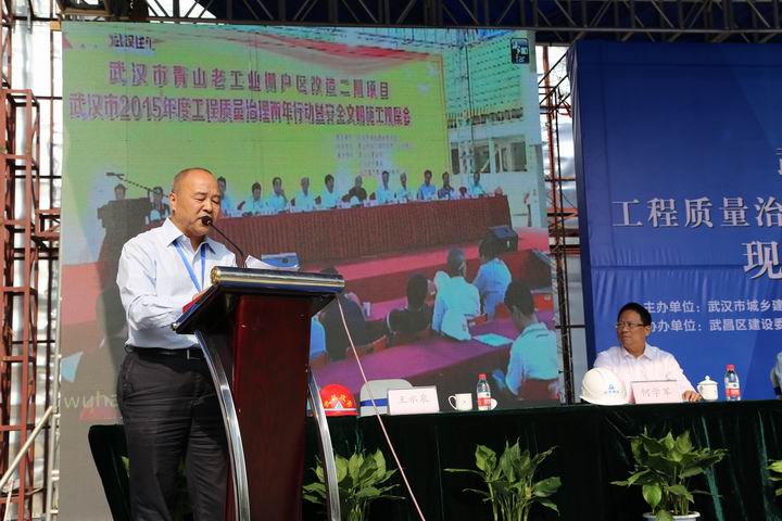 武昌区建委副局长王水泉就质量管理标准化和安全文明施工标准化进行了座谈交流,也对下一步质量管理标准化的推行和安全文明施工标准化工作的落实发表了自己的看法和意见,对aiyouxi(中国)官方网站集团在项目管理标准化等方面所作出的努力给予了充分的肯定。他提出目前全国质量两年整治行动和安全生产标准化的推进工作持续加力过程中,aiyouxi(中国)官方网站集团能够在这个时候举办质量管理和安全文明施工标准化的现场观摩会,意义非凡。希望aiyouxi(中国)官方网站集团能够继续发挥“领头人”的作用,进一步带领武汉市乃至湖北省建筑业市场向更加规范的方向发展。最后向来参会的在建工程的各方责任主体提出要认真学习先进的管理方法和技术创新,及时运用到自身的项目中,并预祝此次现场观摩会举办圆满成功。