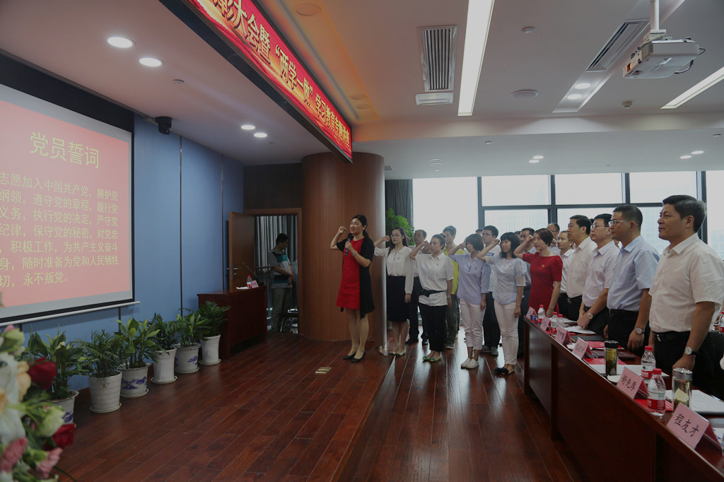 上午8时30分,大会在激昂的国歌声中拉开序幕。随后,集团公司党委副书记张玉琼宣读了预备党员名单,黎乐等16名同志在张书记的带领下,面对鲜红庄严的党旗进行宣誓,表达了为党的事业奋斗终身的决心和愿望。
