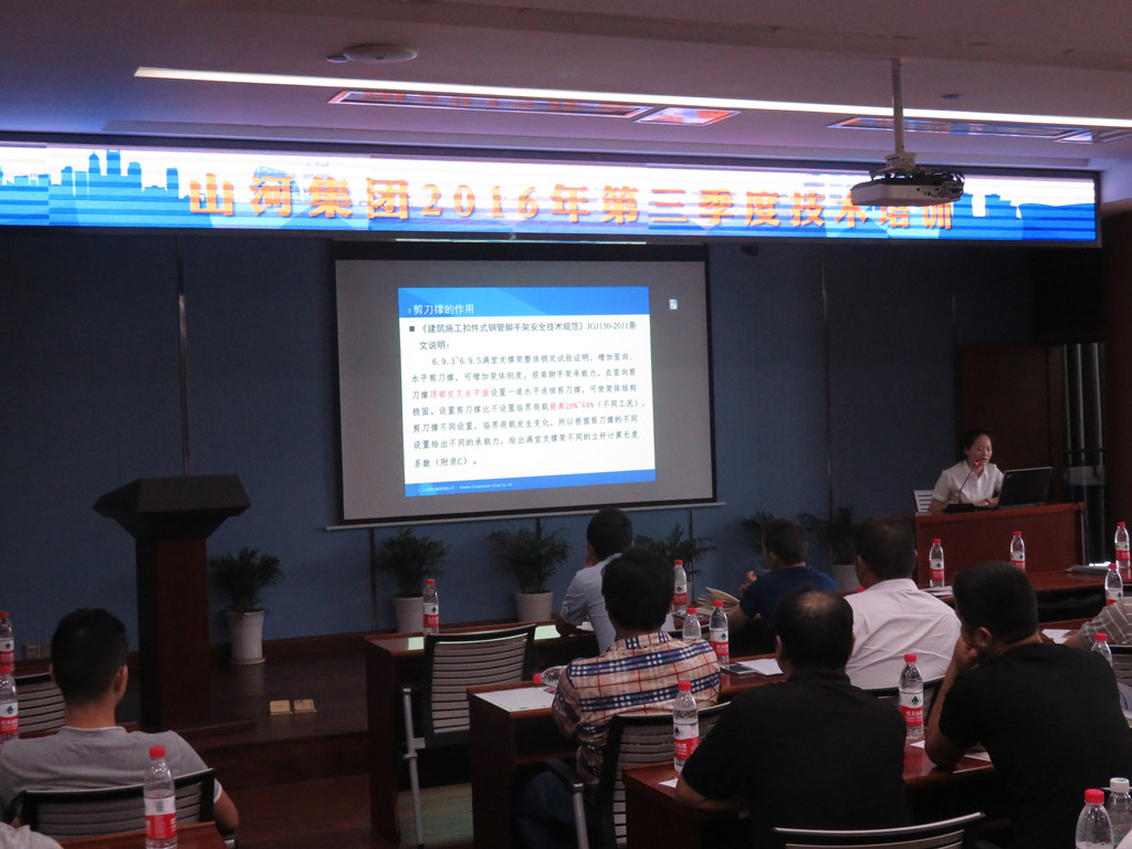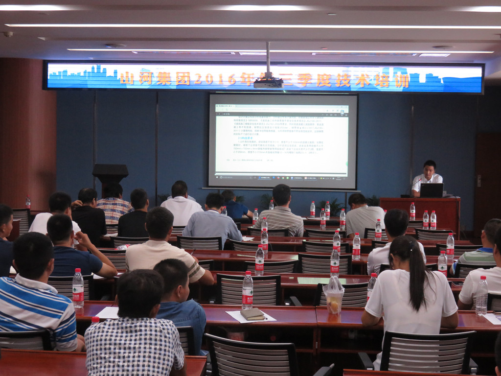 会上,技术部熊燕首先对规范要求、编制流程、方案内容、构造措施、软件操作、作图要求、常见问题以及方案审批作了较为精细的讲解;随后,技术发展中心主任张明星对集团公司最新修订的《高大(支)模板技撑体系施工实施手册》(第二版)进行了宣贯,针对实施工手册中的具体实施内容和重点注意事项做了深入的解读。