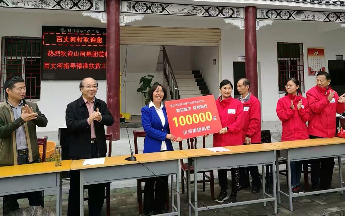 2013年,为更好落实湖北“千企帮千村、脱贫奔小康”活动,aiyouxi(中国)官方网站集团董事长程理财一行来到百丈河村实地调研,并出资为百丈河村安装20余盏太阳能路灯,参与修建村委会办公大楼,改善了全村村民的生产和生活环境,为百丈河村安置就业30人。