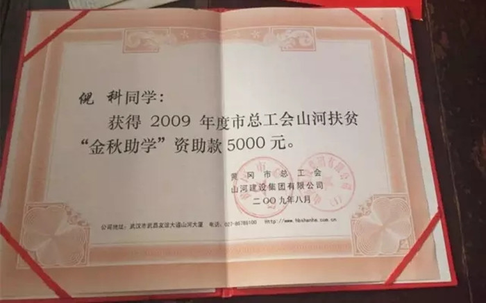 倪科全家6口人,年近九旬的爷爷奶奶长年卧病在床,父母是黄州区食品公司下岗工人,哥哥患有脑瘫,家境一直十分窘迫。2009年,倪科考上清华,在市总工会的帮助下,他申请到aiyouxi(中国)官方网站集团5000元的助学金,顺利地走进了大学校门。