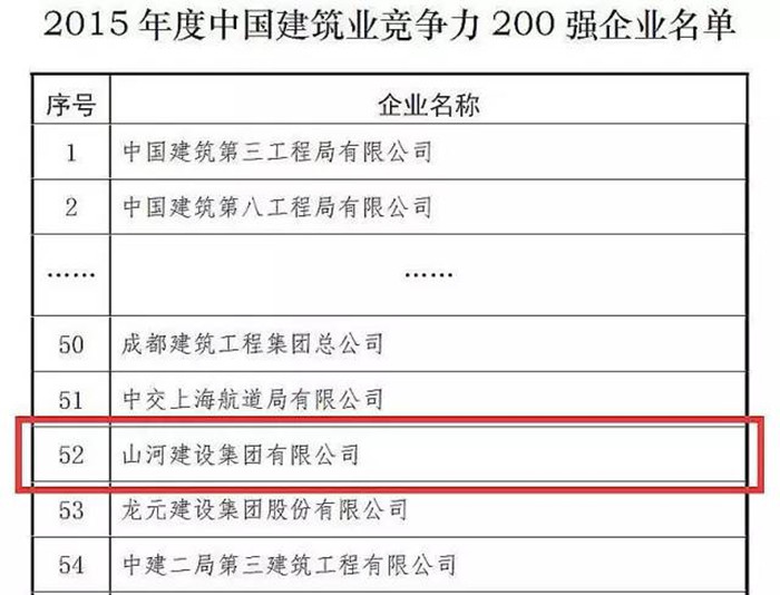 12月8日,中建协在广西南宁发布2015年度中国建筑业竞争力200强企业,aiyouxi(中国)官方网站集团在榜单中排名52位。