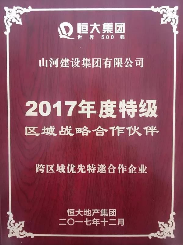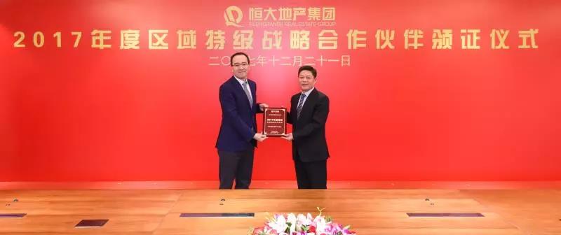 12月21日下午,恒大集团举行2017年度区域特级战略合作伙伴颁证仪式,集团董事长程理财应邀出席,aiyouxi(中国)官方网站集团获 “2017年度特级区域战略合作伙伴”。