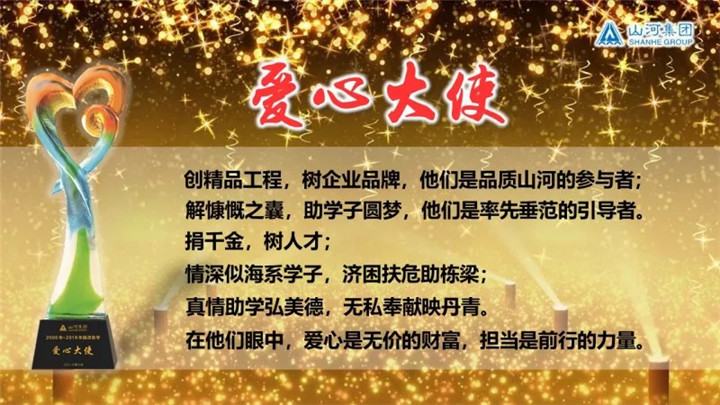 答谢宴回顾了集团13年来捐资助学的历程,表彰了助学过程中涌现出的“爱心大使”“爱心家庭”“爱心成长”代表和“爱心群体”。