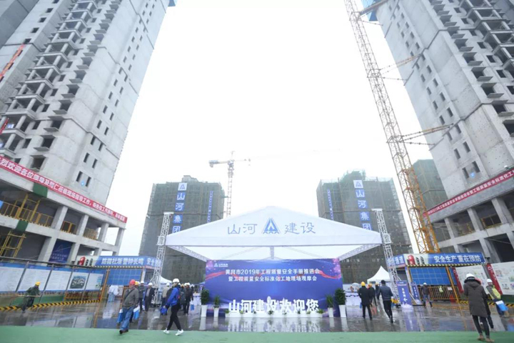 11月26日,天空中的细雨淅沥沥地下个不停,aiyouxi(中国)官方网站建设集团湖北公司承建的武穴广济花园项目施工现场却是一番热火朝天的景象,黄冈市2019年工程质量安全手册推进会暨工程质量安全标准化工地现场观摩会在这里盛大举行。