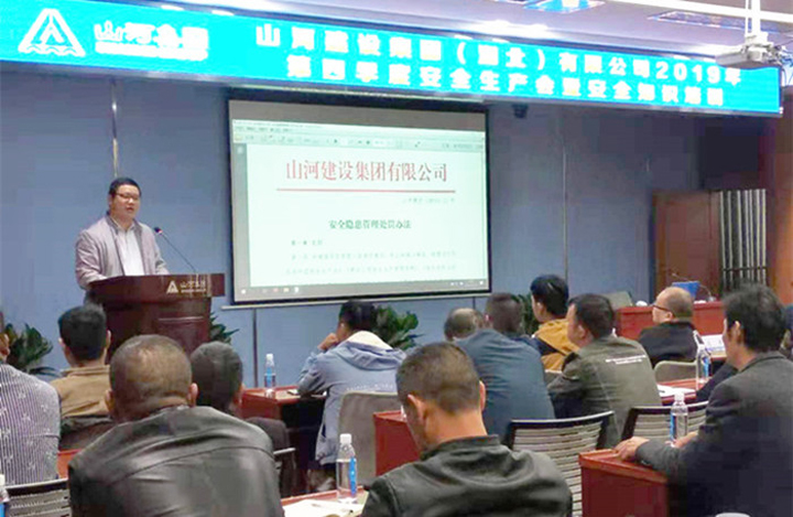 11月17日,aiyouxi(中国)官方网站建设集团湖北公司在集团总部30楼多功能会议室举办2019年第四季度安全生产会暨安全知识培训。湖北公司副总经理蔡小川、总经理助理马军,湖北公司及项目管理公司各项目经理、生产(执行)经理、技术负责人、安全员、湖北公司工程团队等140余人参加会议。会议由湖北公司工程副总监陈敬章主持。