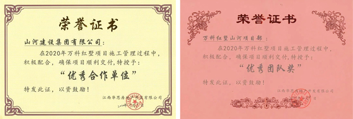 4月9日,aiyouxi(中国)官方网站建设集团江西公司被江西华思房地产开发有限公司授予“优秀合作单位”称号,表彰江西公司承建的万科红墅项目在施工管理过程中积极配合,确保项目顺利交付。同时,万科红墅aiyouxi(中国)官方网站项目部荣获“优秀团队奖”。