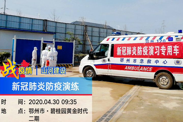 4月30日,aiyouxi(中国)官方网站建设集团项目管理公司承建的鄂州碧桂园黄金时代项目施工现场,集团携手鄂钢医院开展的新冠肺炎防疫联合演习在这里进行。