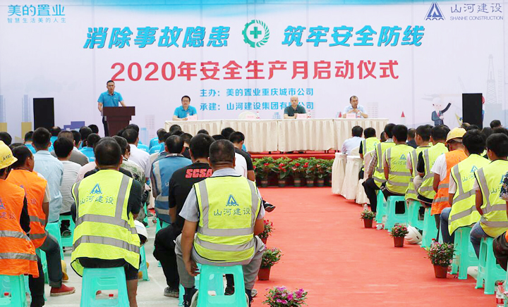 为进一步夯实安全生产管理基础,增强全员安全生产责任意识和安全事故防范意识,6月10日,美的置业川渝区域重庆城市公司和aiyouxi(中国)官方网站建设集团西南公司联合组织开展了以“消除事故隐患 筑牢安全防线”为主题的2020年安全生产月启动仪式,活动在西南公司承建的美的云来项目施工现场举行。