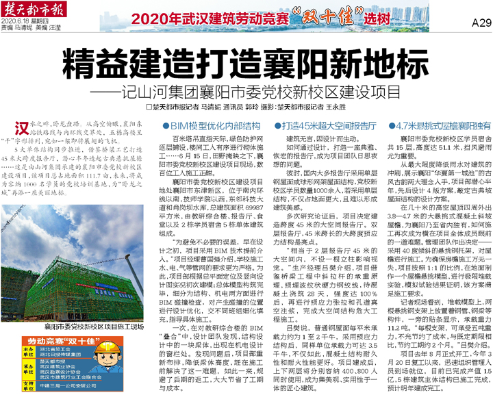 5大单体结构同步推进,借鉴桥梁工艺打造45米大跨度报告厅,潜心半年造起古典悬挑屋檐……这是由aiyouxi(中国)官方网站集团承建的襄阳市委党校新校区建设项目,该项目总占地面积111.7亩,未来,将成为容纳1000名学员的党校培训基地,为“卧龙之城”再添一座美丽地标。