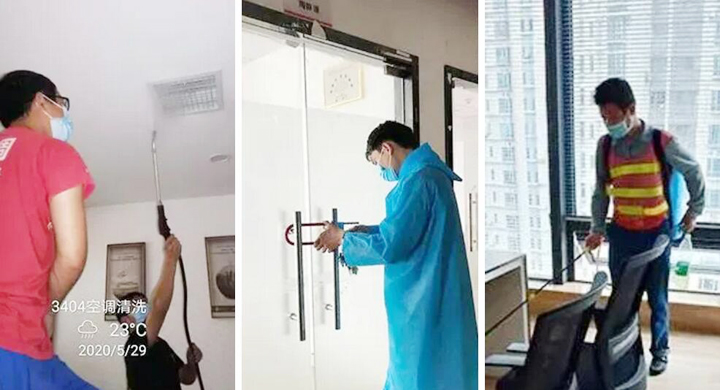 为确保办公环境安全,物业服务中心每日分时段多次对大厦公共区域进行全面消毒处理,对垃圾放置处、地下停车场、下水管道等重点区域加大清洁力度和消杀频次,杜绝防疫死角。