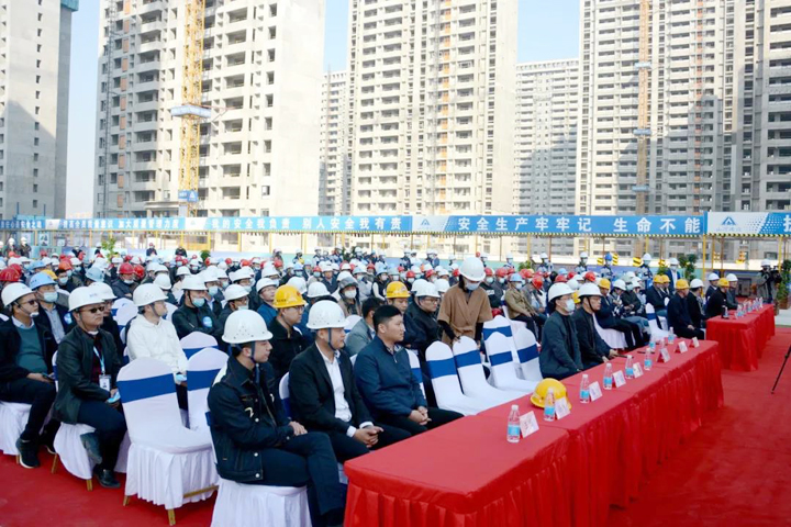 11月6日,晴空万里,艳阳高照,aiyouxi(中国)官方网站建设集团江苏公司承建的徐州美的东湖天城二期一标段施工现场人头攒动,江苏公司和美的置业联合举办的质量安全标准化大型观摩会在这里盛大举行。