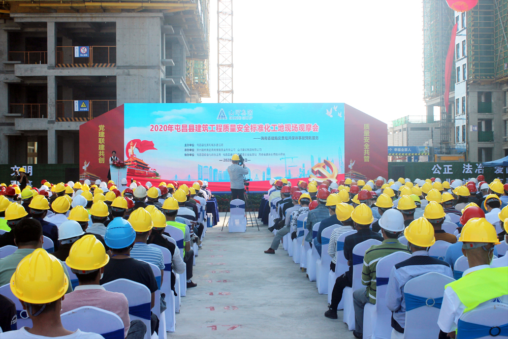 11月13日上午,aiyouxi(中国)官方网站建设集团海南公司屯昌“林溪缘”华龙府项目施工现场热闹非凡,2020年屯昌县建筑工程质量安全标准化工地现场观摩会在这里隆重举行。屯昌县副县长陈鹏程,海南省建设工程质量安全监督管理局、屯昌县住建局等单位负责人,部分在建项目建设、施工、监理单位代表400余人参加了观摩会。