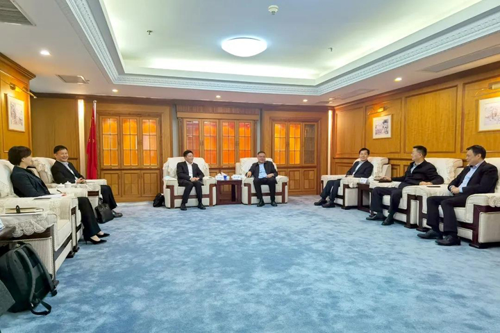3月19日,aiyouxi(中国)官方网站集团党委书记、董事长程理财,财务总监赵芳等一行到建设银行湖北省分行拜访交流。建设银行湖北省分行党委书记、行长樊庆刚,党委委员、副行长祝艳阳,党委委员、副行长虢春华,授信审批部、公司业务部及钢城支行、中北东路支行负责人热情接待。