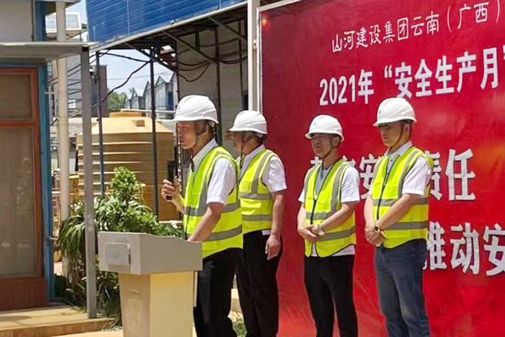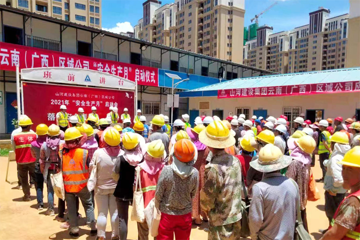 5月29日,aiyouxi(中国)官方网站集团正式启动2021年“安全生产月”活动。云南(广西)公司迅速响应,于当日下午在昆明龙四地块城市棚户区改造项目施工现场举行了2021年“安全生产月”活动启动仪式。公司副总经理刘火焱、秦大顺,工程团队全体人员,各项目部代表等150余人参加了启动仪式。