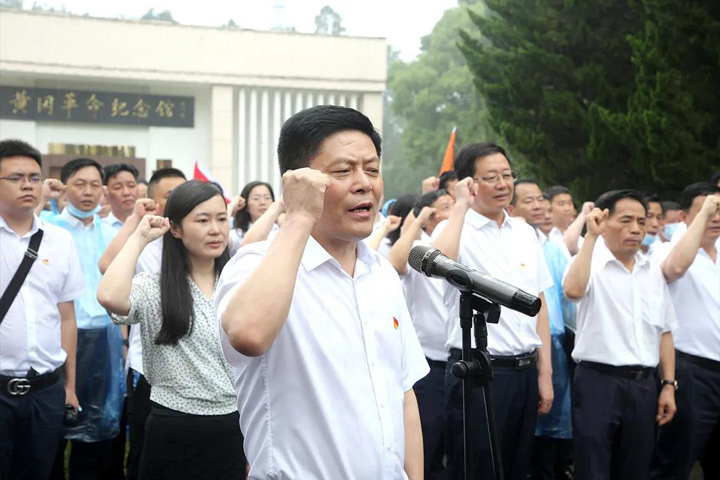 上午9时许,全体党员及发展对象抵达位于团风县杜皮乡的黄冈革命烈士陵园——为建立鄂东革命根据地英勇牺牲的烈士们长眠的地方。团风县人大常委会党组书记、主任丁永忠,县委常委、宣传部长董晓燕等领导和大家一起参加了纪念活动。