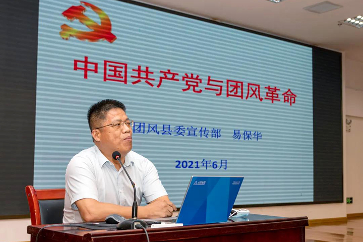 随后,团风县委宣传部副部长易保华讲授《中国共产党与团风革命》的专题党课。团风自古以来就是兵家必争之地,这片红色的土地上,走出了一大批老一辈革命家和名人志士,诞生了全国最早的农村基层党组织,点燃了黄冈革命的火种。老区人民勇当先锋,敢为人先,“坚持28年红旗不倒”,为中国革命做出了不可磨灭的贡献。