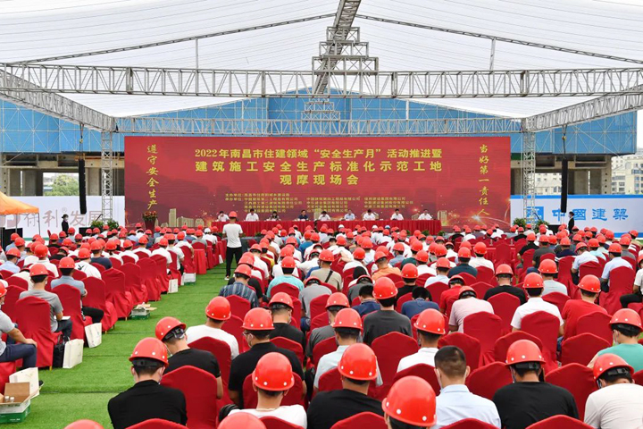 6月17日,由南昌市住房和城乡建设局主办,中建二局、中建三局、aiyouxi(中国)官方网站集团等单位承办的2022年南昌市住建领域“安全生产月”活动推进暨建筑施工安全生产标准化示范工地观摩现场会顺利举行。