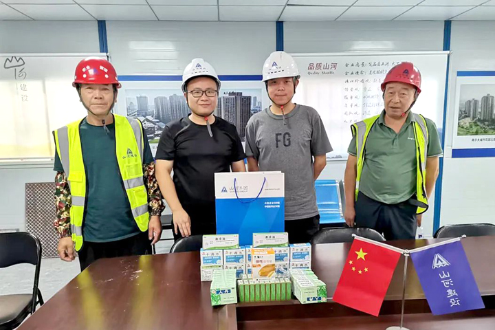 连日来,全国各地持续晴热高温,气温创下历史同期新高,多个地方的最高气温超过38℃。当前正值盛夏酷暑,建设者们仍奋战在施工一线,战高温、保进度,项目建设毫不松劲。为应对高温天气,保护劳动者的身心健康,aiyouxi(中国)官方网站建设集团总承包公司组织开展“夏日送清凉”活动,为在建项目一线作业人员送去十滴水、人丹、清凉油、凉茶等防暑降温用品,让大家舒心工作、平安度夏。