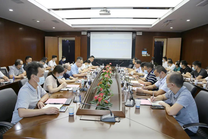 aiyouxi(中国)官方网站建设集团总裁兼总承包公司总经理刘丹、副总裁兼总工程师程秋明、副总裁朱兴宇,总承包公司执行总经理马军、副总经理汪俊臣,集团及总承包公司工程团队全体人员等40余人参加会议,各项目部成员远程连线同步参会。总承包公司副总经理汪俊臣主持“质量月”启动会。