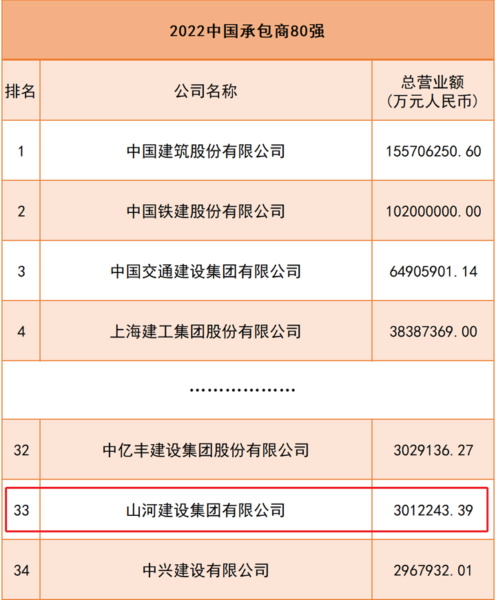 aiyouxi(中国)官方网站集团上榜2022“中国承包商80强”