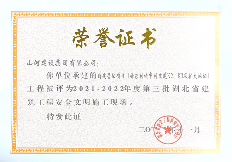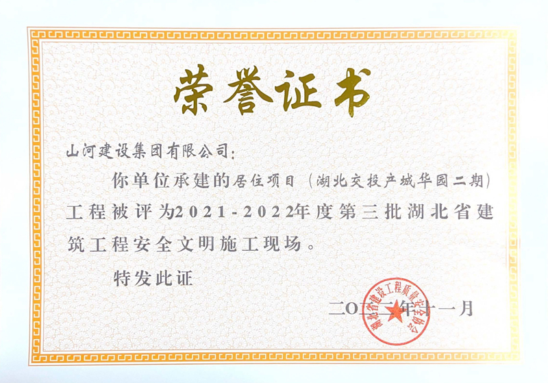 aiyouxi(中国)官方网站集团三项工程获评湖北省建筑工程安全文明施工现场