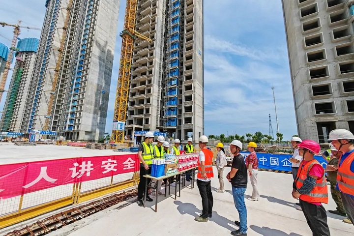 活动中,集团将“送清凉”与“送安全”相结合,要求各项目部在战高温、斗酷暑的同时,更要结合生产实际做到三点:1.认真履行高温天气施工方案和应急预案。2.积极开展安全生产、防暑降温和中暑应急知识宣传教育。3.合理调整时间,避开高温时段,控制室外作业时间和劳动强度,避免高温日照曝晒、疲劳作业,防止中暑。