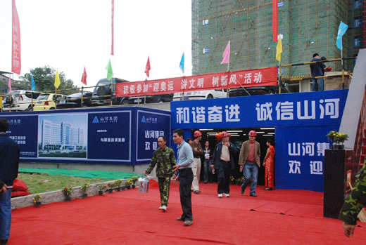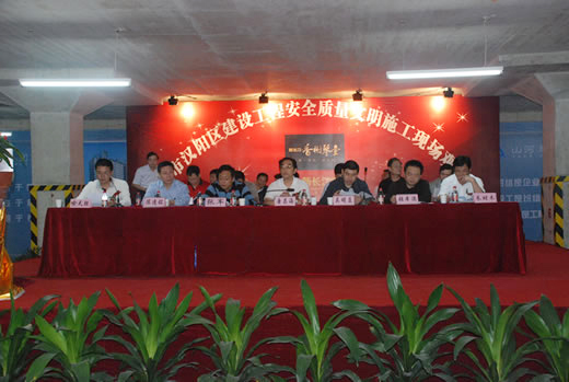 27日上午,武汉市政府、汉阳区区委、武汉市建委、市建管办等主管部门领导和嘉宾,以及各大媒体共500余人参加了此次大会。他们在现场看到了一个建设工程安全和文明施工都非常到位的项目部。在这里,工地上看不见一根随处乱放的钢管;生活区处处干净整洁,工人师傅在温馨如家的环境中休闲娱乐;办公室里各种文件资料分门别类摆放得整整齐齐……而这些不俗的表现,也是行政主管单位为什么会把现场观摩会放在aiyouxi(中国)官方网站集团项目部举行的原因。
