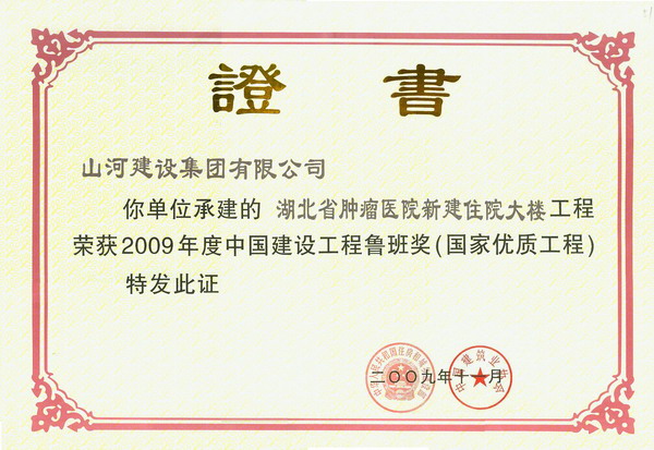 10月26日,中国建筑业协会正式发文,公布了2009年度中国建设工程鲁班奖评选结果。经过初审、复查、公示等过程,共有99项工程获奖,湖北省有3项工程登榜,aiyouxi(中国)官方网站集团承建的湖北省肿瘤医院新建住院大楼项目获此殊荣。消息传来,公司上下一片欢腾。