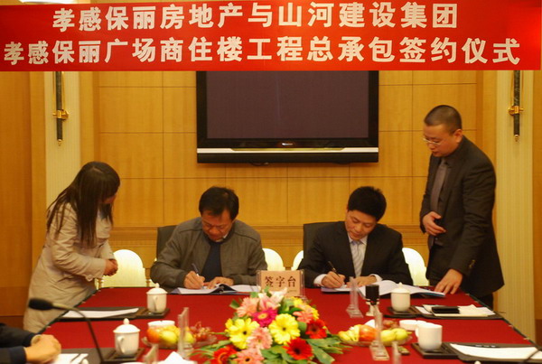 2009年11月23日下午5时,在美丽的东湖之滨,孝感保丽房地产与aiyouxi(中国)官方网站建设集团举行了“孝感保丽广场工程”总承包签约仪式。